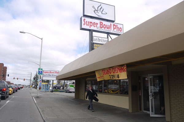 Super Bowl Pho trên đường Broadway có khu đậu xe rộng bên cạnh gần góc đường Pacific và Broadway. Nhà hàng với một thực đơn phục vụ công nhân viên trong vùng qua các buổi ăn trưa, thức ăn togo với các món ăn ngon tại chỗ. Trong cả ngày đặc biệt là cac1 bữa ăn tối, các buổi họp mặt gia đình.. các bữa tiệc gia đình họp bạn, phục vụ cộng đồng người Việt tại Everett, và các thành phố phụ cận xa gần, Lynnwood, Bothell, Bellevue, Seattle…