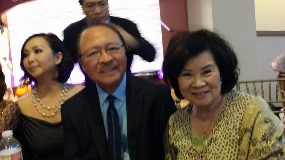 Ảnh mầu: Nhà Truyềnthông Bích Huyền (phải) cạnh Nhạc sĩ Nam Lộc (giữa)