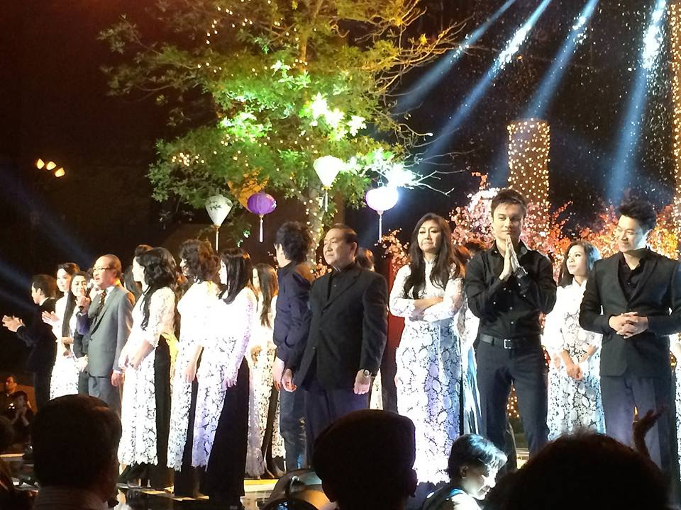Chú thích hình: ảnh trên Nhạc sĩ Anh Bằng đã soạn chung khúc Việt Dzũng Trong Trái Tim Việt Nam đặc sắc cho toàn thể nghệ sĩ hát cuối chương trình thu hình Asia 75 lần này