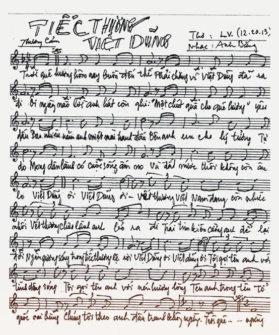 Sheet music ca khúc để tưởng nhớ Việt Dzũng, thơ LV, nhạc Anh Bằng
