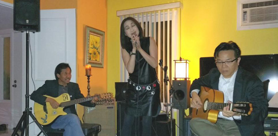 Trên cùng nhạc sĩ Đinh Trung Chính (phải) và nhạc sĩ Phạm Khanh ( trái) là hai hạt nhân quan trọng và tiên phong của chương trình nhạc Việt và sinh hoạt của thanh thiếu niên Việt, đang cùng với ca sĩ Ý Lan trong một buổi sinh hoạt của tổ chức này tại Quận Cam- Cali