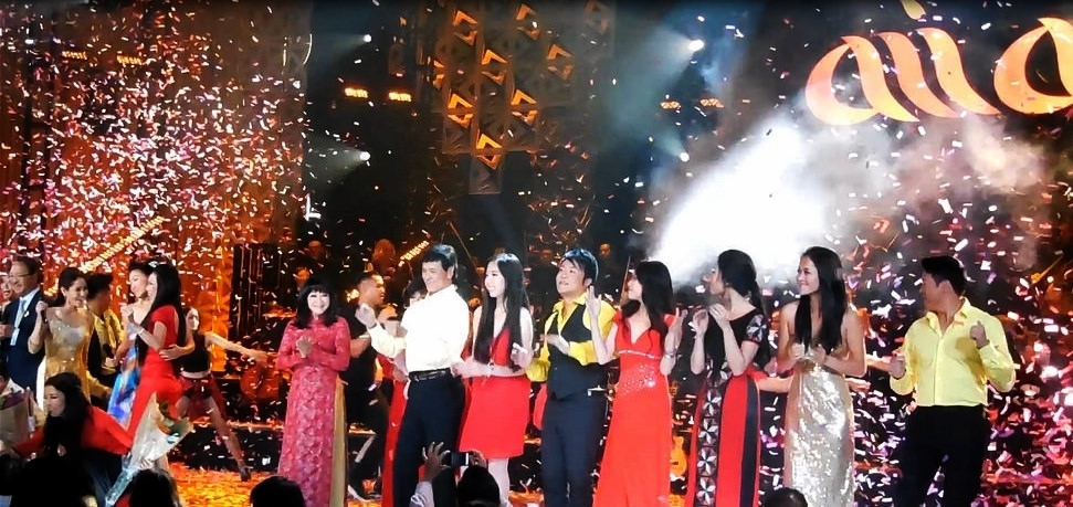 Chỉ vài hôm trước show Hạ Vi đọc facebook, thấy một vài tấm hình “hé lộ” tí xíu về sân khấu …Hạ Vi đã đoán … Asia 77 là production của John Bạch & Hoàng Đăng-Minh! Yayyy!, vì mình đã tham dự Mini show của Mai Lệ Huyền, được produced & directed bởi hai người bạn trẻ nầy. Rất có tài vì John Bạch là con trai của chị Thy Vân, cháu ngoại của NS Anh Bằng! Asia 77 với một sự đổi mới giữa thế hệ xưa & thế hệ trẻ.